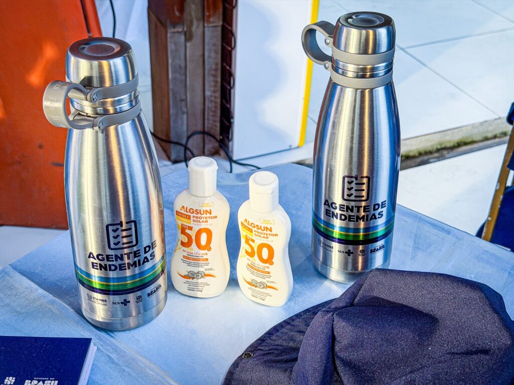 Os kits incluem protetor solar, garrafa personalizada, equipamentos de proteção, agendas, camisas de proteção UV e coletes, garantindo mais segurança e identificação durante as visitas domiciliares. Os novos fardamentos também contribuem para a proteção dos profissionais que atuam diariamente em contato direto com a população.